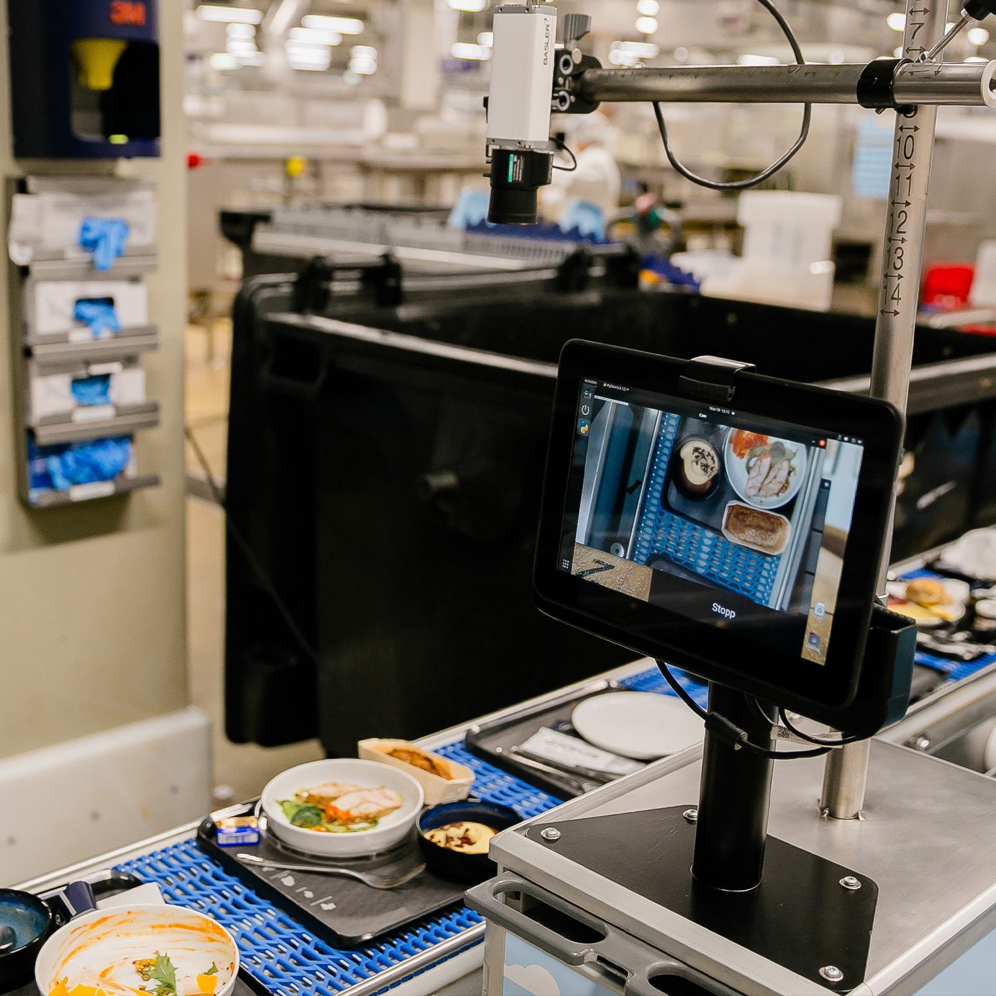 Mit dem „Tray Tracker“ hat die Lufthansa Group eine innovative, KI-gestützte Lösung entwickelt, um die Rückgabe von Mahlzeiten an Bord zu messen und zu reduzieren. Die mobile Technologie scannt die zurückgegebenen Mahlzeiten aus dem Bordcatering der Flüge an der Spülstraße. Künstliche Intelligenz erkennt, ob eine Mahlzeit teilweise gegessen, vollständig gegessen oder unberührt geblieben ist. Die Flugroute, die Reiseklasse und das Mahlzeitenkonzept werden ebenfalls in die Analyse einbezogen. Die gewonnenen Erkenntnisse ermöglichen künftig eine optimierte Portionsgröße und Menüauswahl. Darüber hinaus wird der „Tray Tracker“ dazu beitragen, die CO₂-Emissionen in Zukunft zu reduzieren, da durch die Vermeidung von Überladungen das Gesamtgewicht sinkt. Gleichzeitig werden weniger Lebensmittel transportiert, verbraucht und entsorgt.