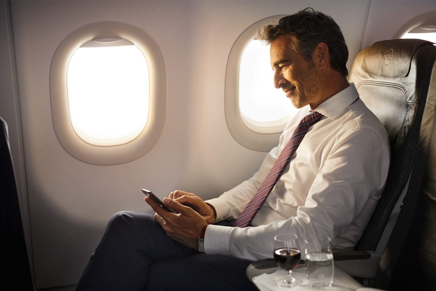 In Business Class, the middle seat is always kept empty. Business Class travelers may enjoy personal space on board to work undisturbed or to rest in a comfortable environment.
